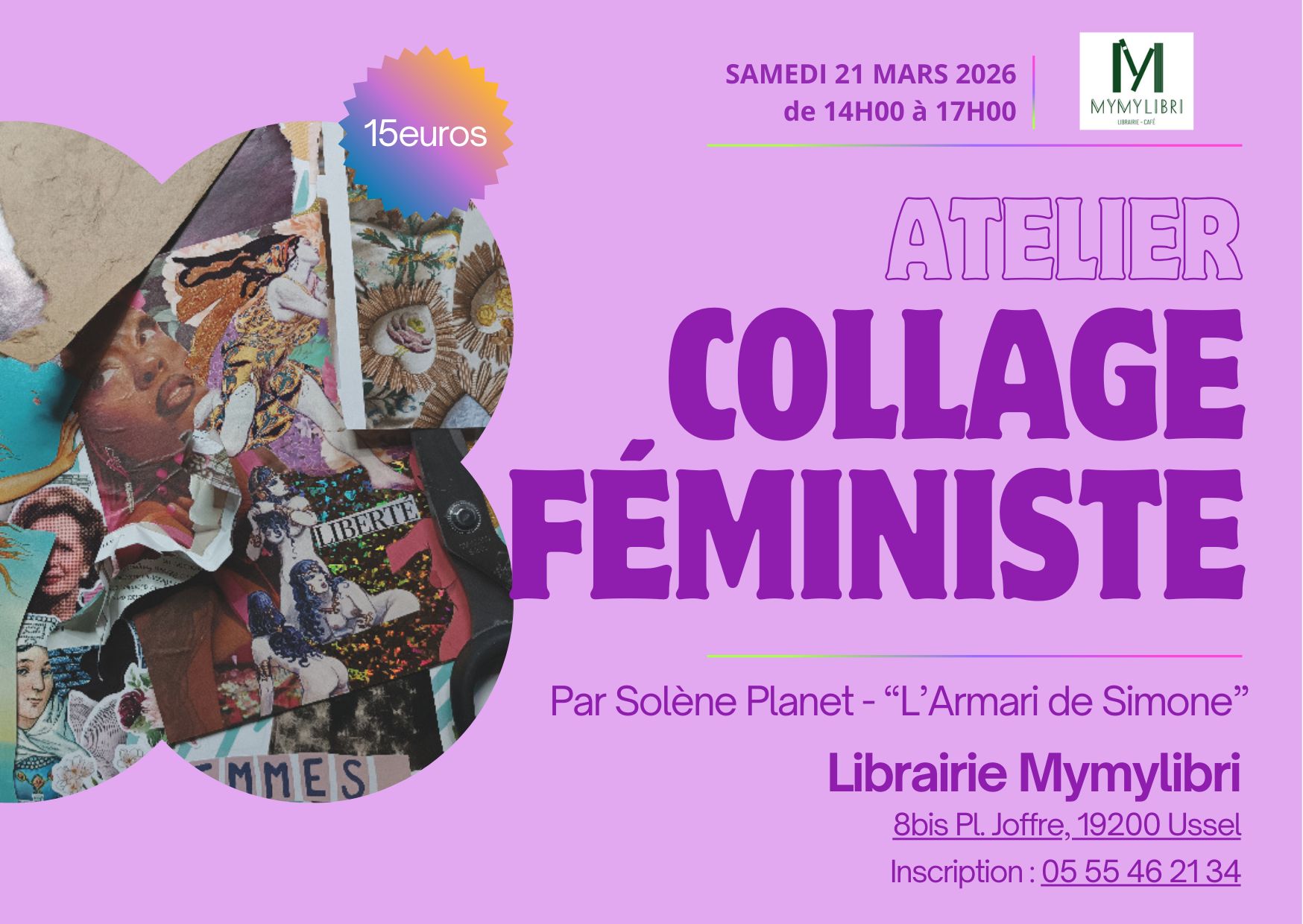 De 14h à 17h, Solène Planet, artiste, animera un atelier collages, sur réservation et participation de 15 euros (matériel fourni)