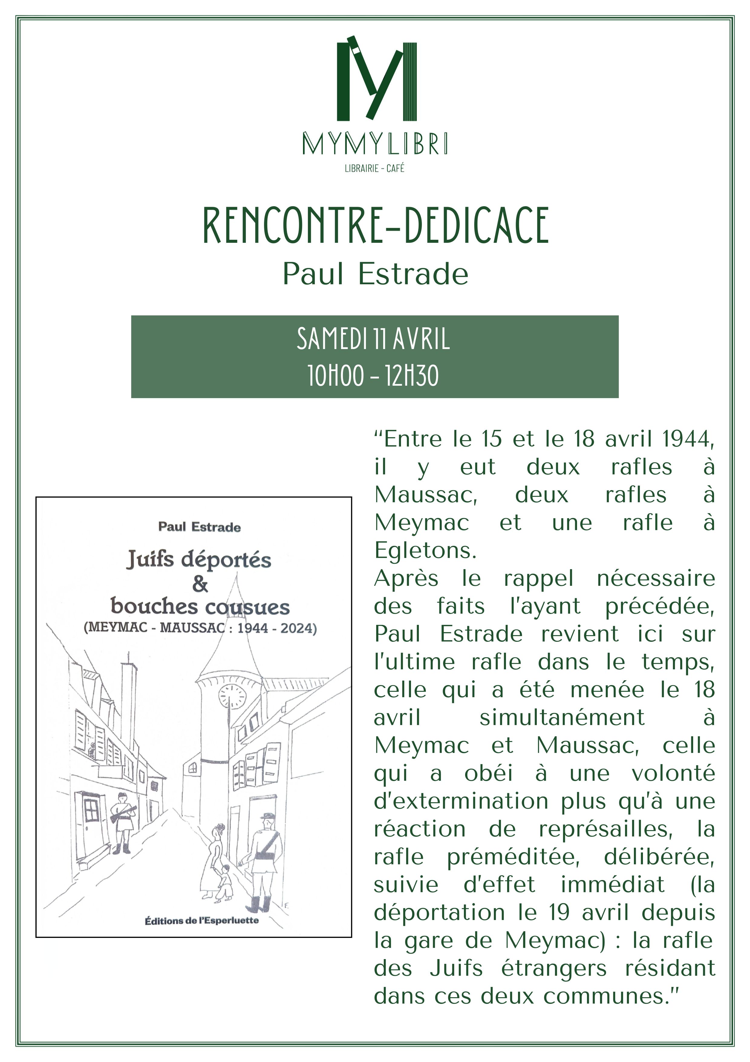 Samedi 11 Avril de 10h à 12h30, Paul Estrade dédicacera son ouvrage Juifs déportés & Bouches cousues : Meymac-Maussac 1944