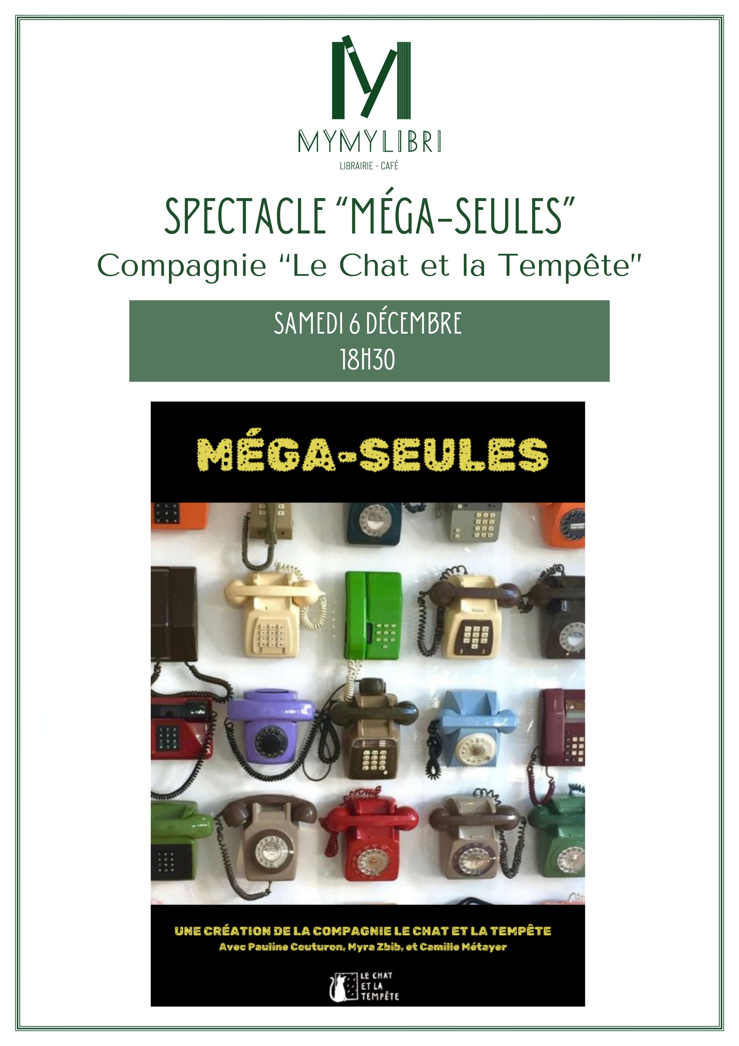 Samedi 6 décembre à 18h30, la compagnie Le chat et la tempête fera lecture de la pièce de théâtre Méga-seules, qu'ils auront travaillée en résidence au Moulin de la Luzège, la semaine précédente. Soirée sur réservation au 05.55.46.21.34 et par mail à librairiemymylibri@gmail.com